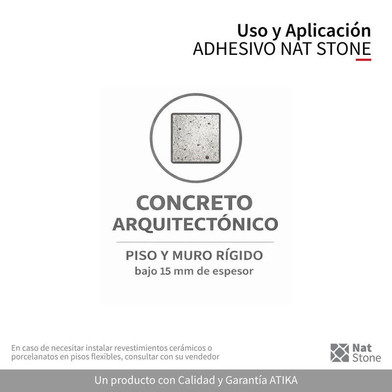 Adhesivo especial para muros rígidos y flexibles. Formulado para la instalación de concreto arquitectónico, revestimientos pétreos y superficies rígidas como hormigón, estucos y albañilería. 25 kg aprox/saco.