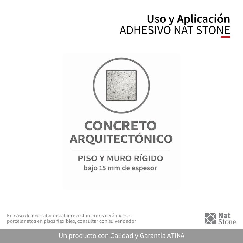 Adhesivo especial de alta adherencia de doble acción para pisos y muros rígidos. Formulado para la instalación de concreto arquitectónico, revestimientos pétreos y superficies rígidas como hormigón, estucos y albañilería. 25 kg aprox/saco.