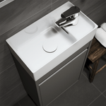 Mueble para lavamanos de 40 cm, de 1 puerta con sistema Soft Close y color Gris Mate. Incluye set de anclaje a muro. No incluye lavamanos; Compatible con K114-004
