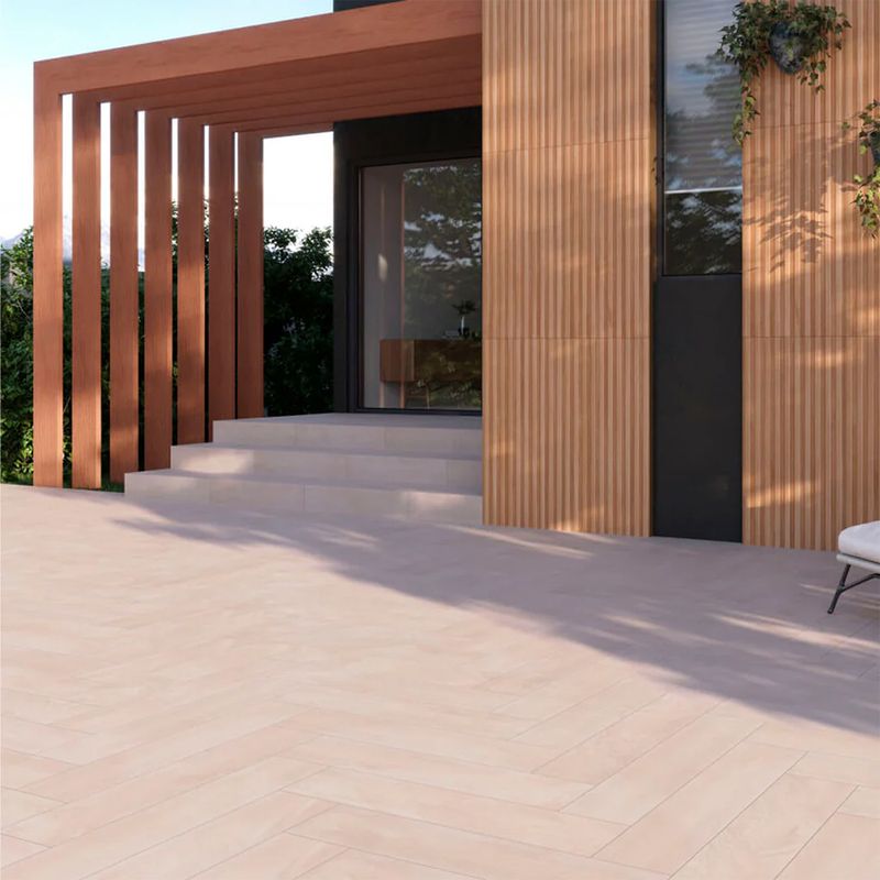 Porcelanato esmaltado rectificado, look madera con terminación satinada de 19,7x120 cm, para piso y muro.