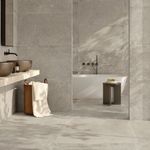 Porcelanato esmaltado italiano rectificado look piedra con terminación natural de 100x100 cm.