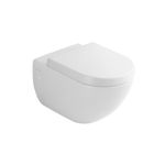 WC Suspendido de loza cerámica blanca con Ceramicplus de efecto repelente al polvo, con descarga a muro, consumo de agua mínimo de 6 litros con descarga completa y asiento con sistema Soft Close y bisagras Quik Release